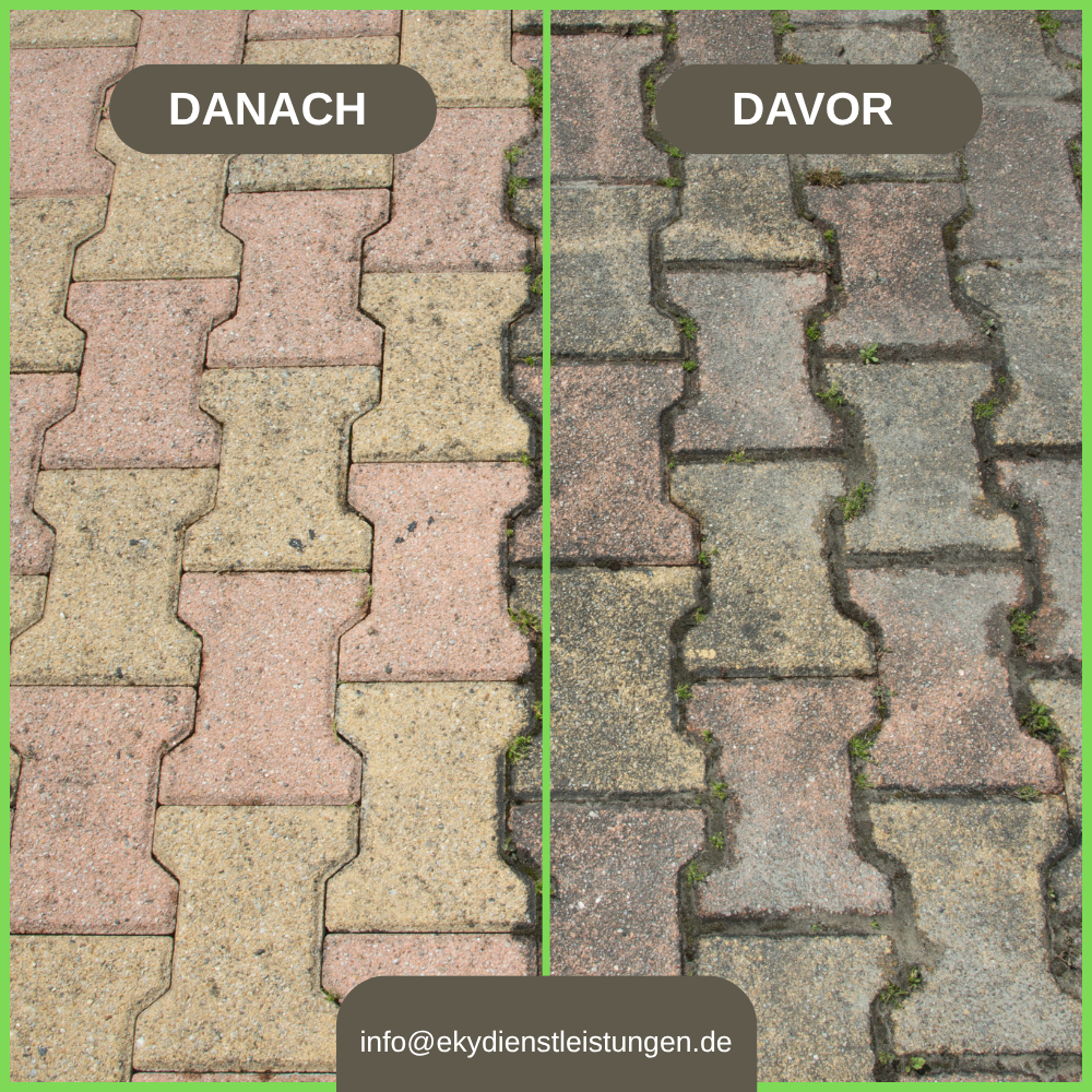 Verleihen Sie Ihren Wegen neuen Glanz – mit professioneller Pflastersteinreinigung von Eky Dienstleistungen.